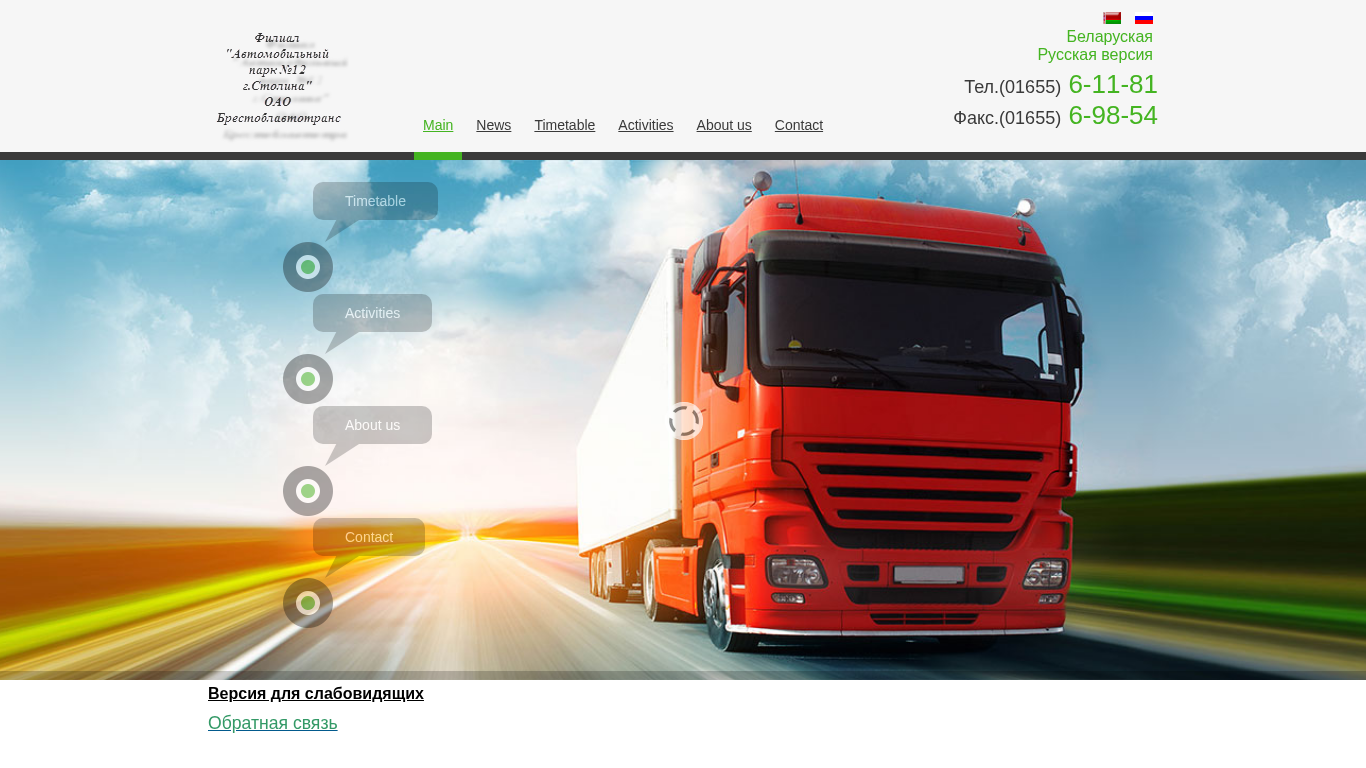 | AI-анализ | This website is a transportation company based in Belarus, providing bus services with a significant history and a strong focus on labor achievements. The main page includes sections for news, timetable, activities, services, administrative procedures, station diagnostics, rolling stock, about us, history, bus fleet, vacancy, guide, bus stations, and contact information. For the past 11 months, the company has transported 214 tons of economic cargoes and 3.6 million passengers, covering a turnover of 12.6 million ton-kilometers and 58.1 million passenger-kilometers, respectively. Notable employees, such as Peter Zelinski, Myshepud Sergey, Nikolai Bozhko, and Vladimir Bognat, have been honored for their dedication and labor achievements with various awards. The company's contact information is available, |