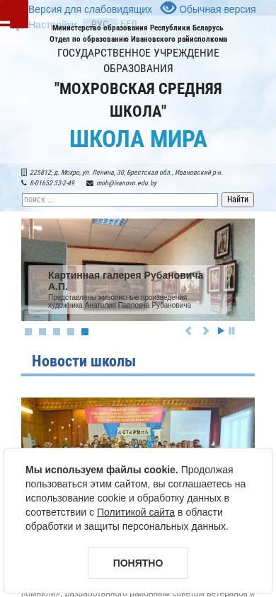 | AI-анализ | Проект веб-сайта "Мохровская средняя школа" является официальным сайтом средней школы, расположенной в городе Мохро, Ивановский район, Брестская область, Беларусь. Сайт предоставляет информацию о школе, ее целях и руководстве, образовательном процессе, социальной поддержке, библиотеке, группах для учащихся на протяжении всего дня, а также различных административных процедурах. Пользователи могут найти контактные данные школы, включая телефонные номера, электронные адреса и физические адреса. Сайт также включает разделы с новостями, мероприятиями и историко-музейным разделом, посвященным истории региона и самой школы. Кроме того, на сайте есть разделы для учащихся с ограниченными возможностями и раздел для обращения в музей. Сайт управляется Министерством образования Республики Беларусь, Ивановским районным отделом образования и образовательной инстанцией "Мохровская средняя школа". |