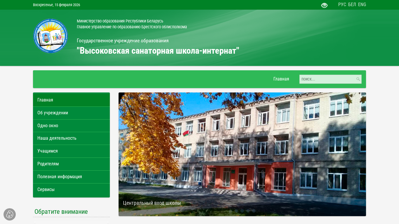 | Адрес | Обратите внимание, © ГУО "Высоковская санаторная школа-интернат", 2026, ВЕБ-МАСТЕРСКАЯ.БЕЛ, Адрес: 225080, ул. Социалистическая, 4 |