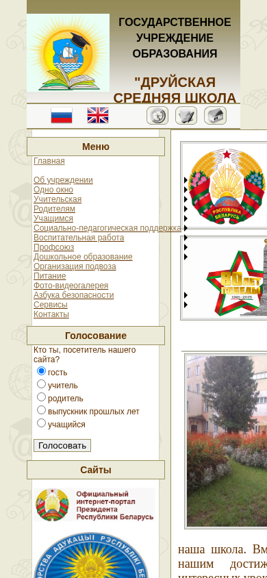 | Адрес | школа Браславского района", Адрес:, 211960, Витебская область, Браславский район, агрогородок Друя, улица Ленина, дом 67, корпус |
