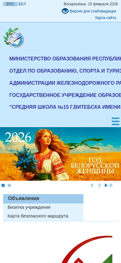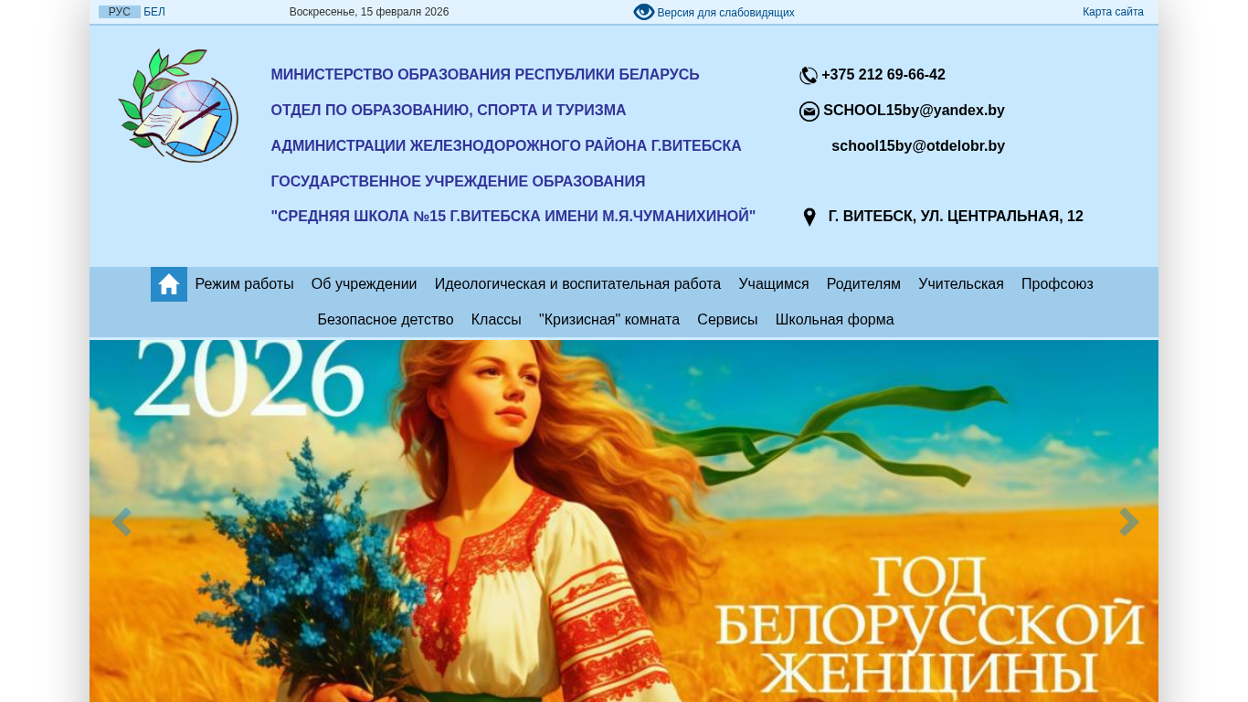 | Название / Заголовок | ГУО "Средняя школа №15 г. Витебска имени М.Я.Чуманихиной" |