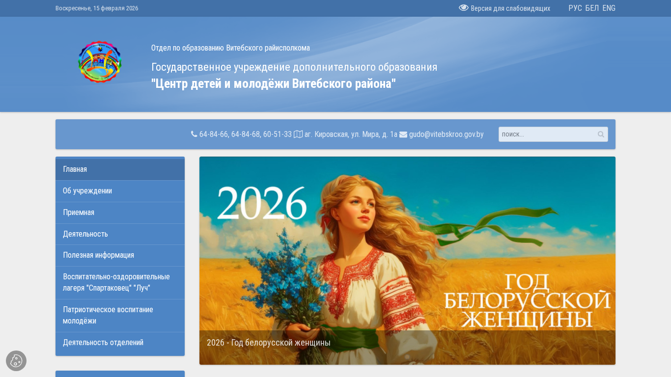 | Адрес | дополнительного образования "Центр детей и молодёжи Витебского района", 2026, ВЕБ-МАСТЕРСКАЯ.БЕЛ, аг. Кировская, ул. Мира, д. 1а |