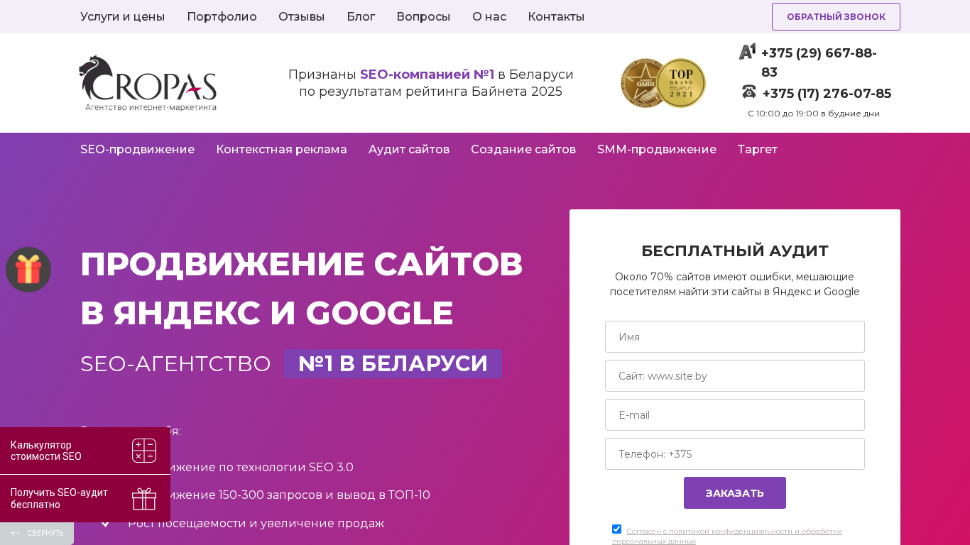 | Название / Заголовок | Продвижение сайтов в Минске | SEO-раскрутка сайта, цены | Cropas |