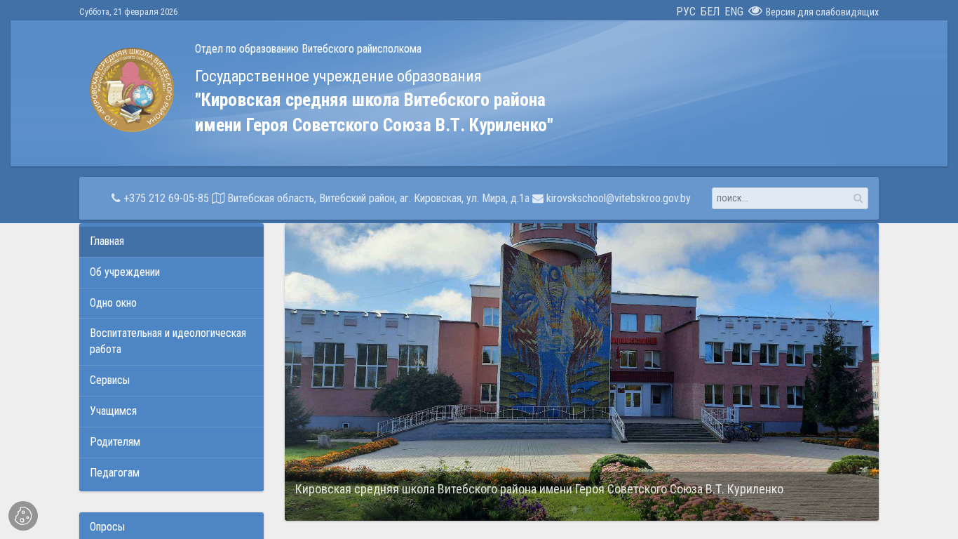 | Название / Заголовок | ГУО "Кировская средняя школа Витебского района имени Героя Советского Союза В.Т. Куриленко" |