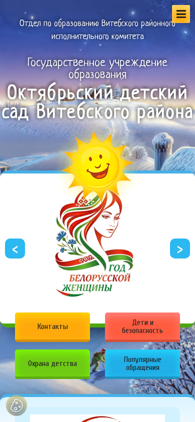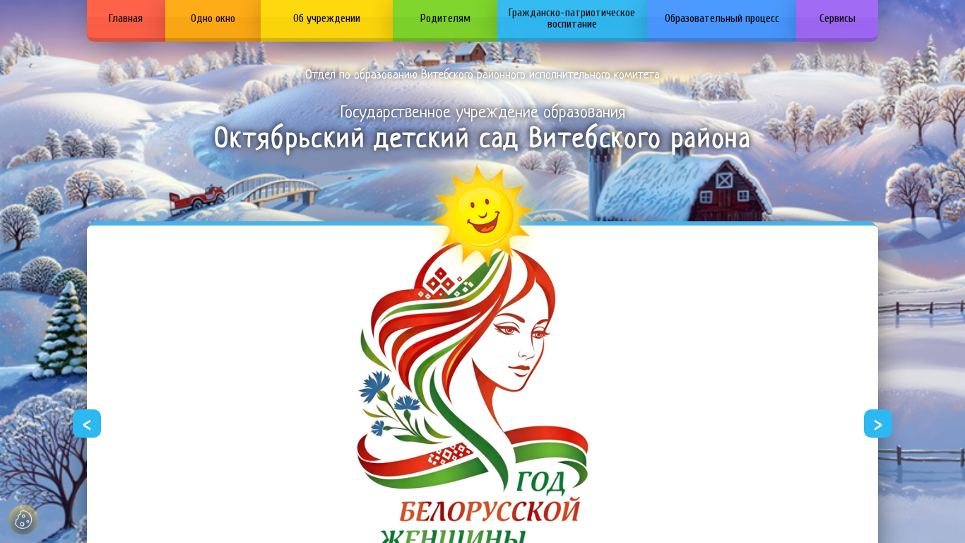 | AI-анализ | The portal okt-sad.vitebskroo.gov.by is a government educational institution website for an October Kindergarten in the Vitebsk region. The title of the website is "Октябрьский детский сад Витебского района" (October Kindergarten of Vitebsk region). The description mentions various aspects of the kindergarten, including its organization, hours of operation, admission procedures, and contact information. Keywords related to education, the year 2026, kindergarten, organization, preschool, children, work, contacts, and Vitebsk region are prominent. The website likely provides information on the kindergarten's schedule, administration hours, admission conditions, and the application process for enrolling children. It may also include sections on the kindergarten's history, goals, and structural divisions. The |