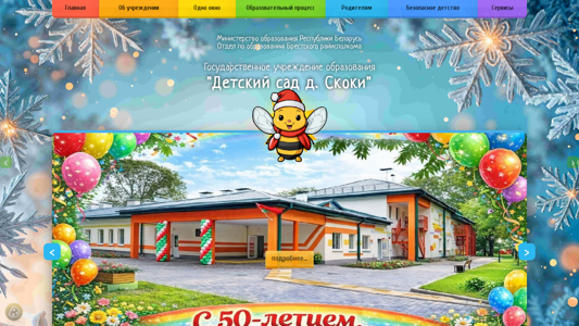 | AI-анализ | The web project "Детский сад д. Скоки" (Skoki Kindergarten) is a Belarusian educational institution for young children located in the Brest region. The website provides comprehensive information about the kindergarten, including its administration, collective, history, objectives, rules, and contact details. Visitors can learn about the kindergarten's educational programs, safety regulations, and the roles of pedagogical staff and parents. The website also features news and announcements, as well as information on enrollment procedures and available resources for children with special needs. Additionally, the site offers various consultative services for parents and provides guidelines on emergency situations and cybersecurity. The domain is skoki-du.roobrest.gov.by. |