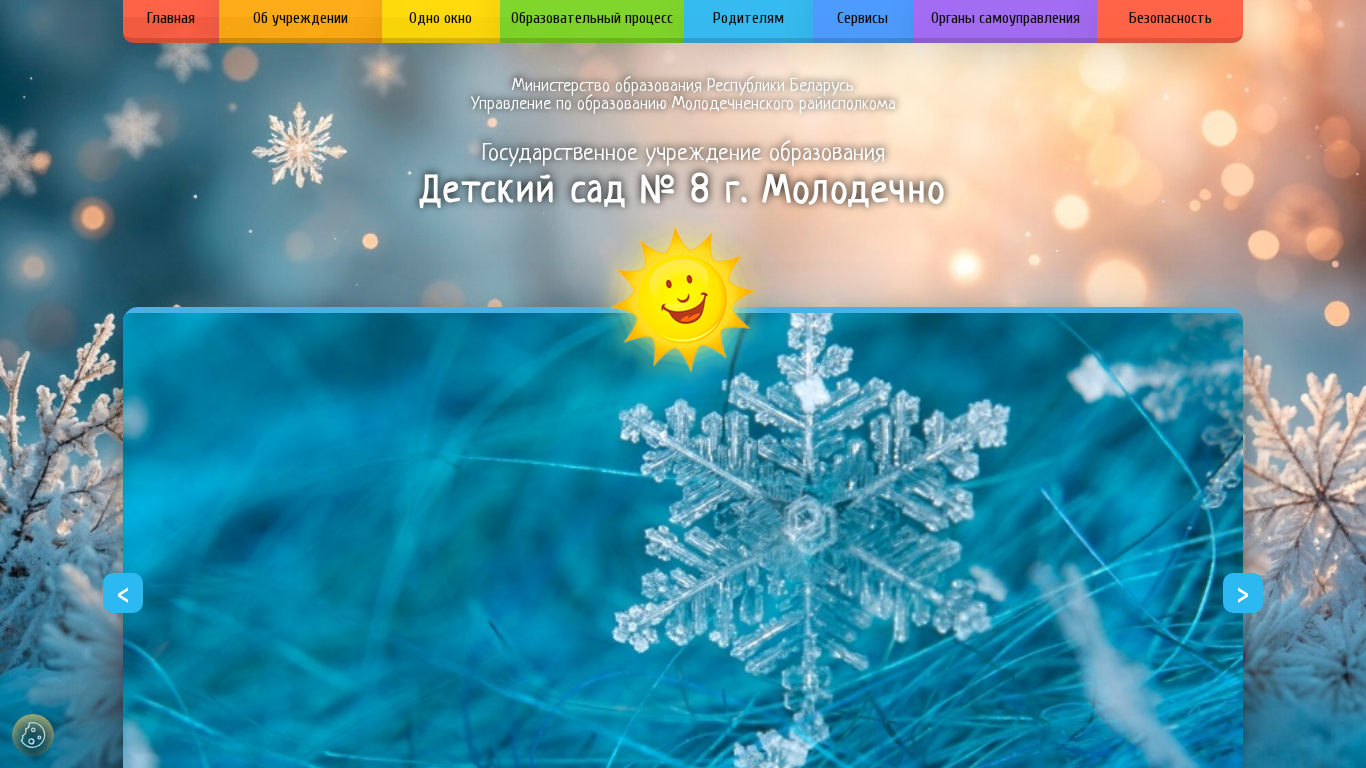 | AI-анализ | --- This website is for Kindergarten No. 8 in Minsk, Belarus, as indicated by its title "Детский сад № 8 г. Молодечно" and the top keywords "детский сад" (kindergarten) and "молодечно" (Minsk). The description provides information on various aspects of the kindergarten, including its leadership, admission procedures, contacts, structure, rules for pedagogical workers, news, and interactive features. The content appears to be focused on the kindergarten's educational offerings and policies, as evidenced by the high occurrence of keywords related to education, such as "образования" (education), "учреждении образования" (educational institutions), "дошкольного образования" (preschool education), and "обработки персональных дан |
