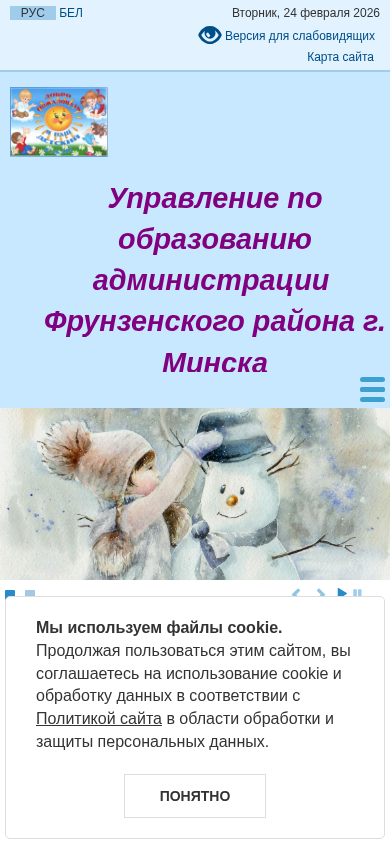 | Адрес | КОНТАКТЫ, Управление по образованию администрации Фрунзенского района г. Минска, Адрес:, 220019 г. Минск, ул. М. Горецкого, д.45 |