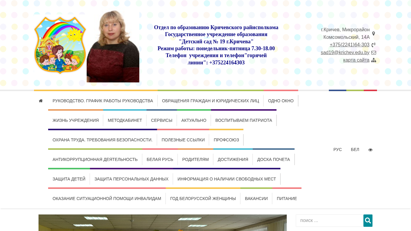 | Адрес | одарённой молодёжи, подробнее », © sad19.krichev.edu.by, 2026, 213500 Могилевская область, г. Кричев, ул. Микрорайон Комсомольский, д. 14А |