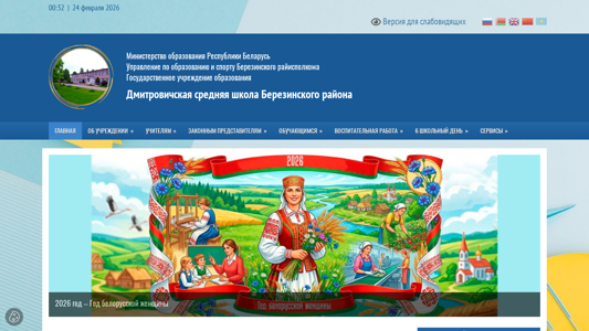 | AI-анализ | This online resource is the official website of Dmitrovichskaya Srednya Shkola (Dmitrovich Middle School) in Berezinsky District, Belarus. The website provides information about the school's history, traditions, achievements, and current activities. Key topics include education, admissions, documents, news, and various educational programs. The school's leadership, pedagogical staff, and goals are introduced. There are sections dedicated to kindergarten education, extracurricular activities, and methodological recommendations. The website also includes contact information, administrative procedures, and links to various educational and support resources. The design features an interactive placard, photo and video galleries, and a section for parents. The school operates under the Ministry of Education of the Republic of Belarus and offers education from kindergarten to secondary level. |