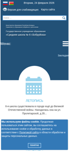 | AI-анализ | --- The portal sch6.bobruisk.edu.by is a website for Middle School No. 6 in Bobruisk, Belarus. The most frequent words on the site include '2023' with 95 occurrences, 'день' (day) with 88, '2024', '2025', 'учреждения' (institutions), 'воспитания' (education), 'беларусь' (Belarus), 'моя' (my), 'безопасности' (safety), and 'школа' (school). The site is medium in size with standard font and standard inter-letter spacing. The color scheme is white with black text. Images are turned off and the content is text-only. The language selection includes Belarusian, Abkhazian, |