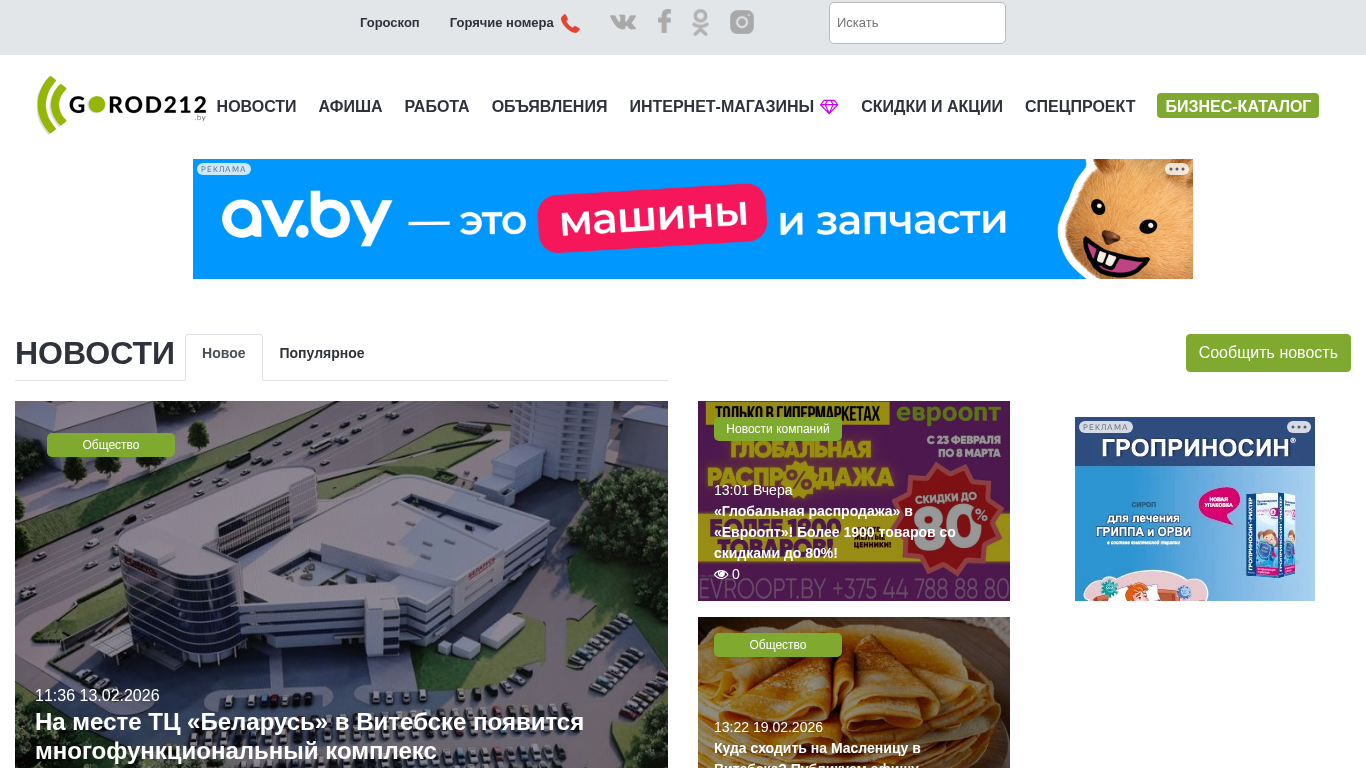 | SEO-описание | Городской портал Витебска. Новости, реклама, объявления, афиша мероприятий, работа, вакансии, резюме, скидки и акции, спецпроекты. Только самые актуальные новости. Прогноз погоды, расписание транспорта, гороскоп всех знаков зодиака на сегодня. экстренные службы и горячие номера, курсы валют. |