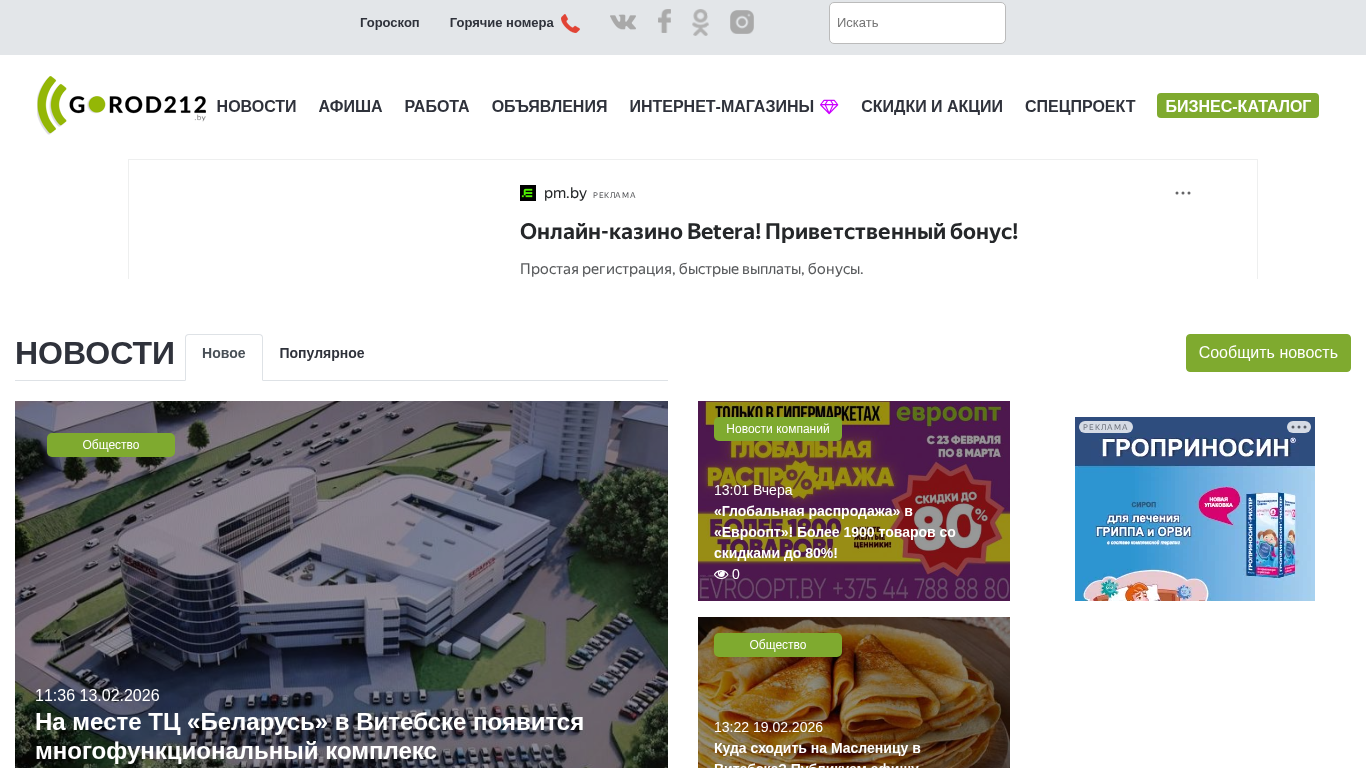 | SEO-описание | Городской портал Витебска. Новости, реклама, объявления, афиша мероприятий, работа, вакансии, резюме, скидки и акции, спецпроекты. Только самые актуальные новости. Прогноз погоды, расписание транспорта, гороскоп всех знаков зодиака на сегодня. экстренные службы и горячие номера, курсы валют. |