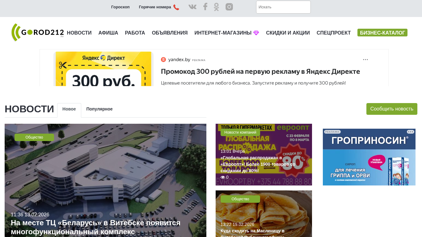 | SEO-описание | Городской портал Витебска. Новости, реклама, объявления, афиша мероприятий, работа, вакансии, резюме, скидки и акции, спецпроекты. Только самые актуальные новости. Прогноз погоды, расписание транспорта, гороскоп всех знаков зодиака на сегодня. экстренные службы и горячие номера, курсы валют. |