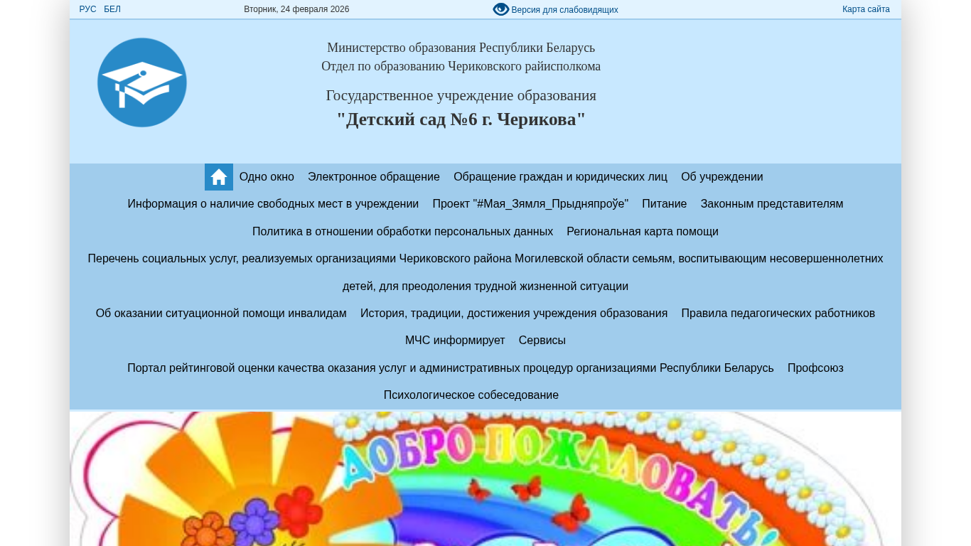 | Название / Заголовок | Детский сад №6 г. Черикова |