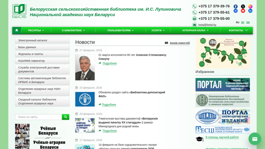 | Название / Заголовок | Белорусская сельскохозяйственная библиотека им. И.С. Лупиновича Национальной академии наук Беларуси - Главная страница |