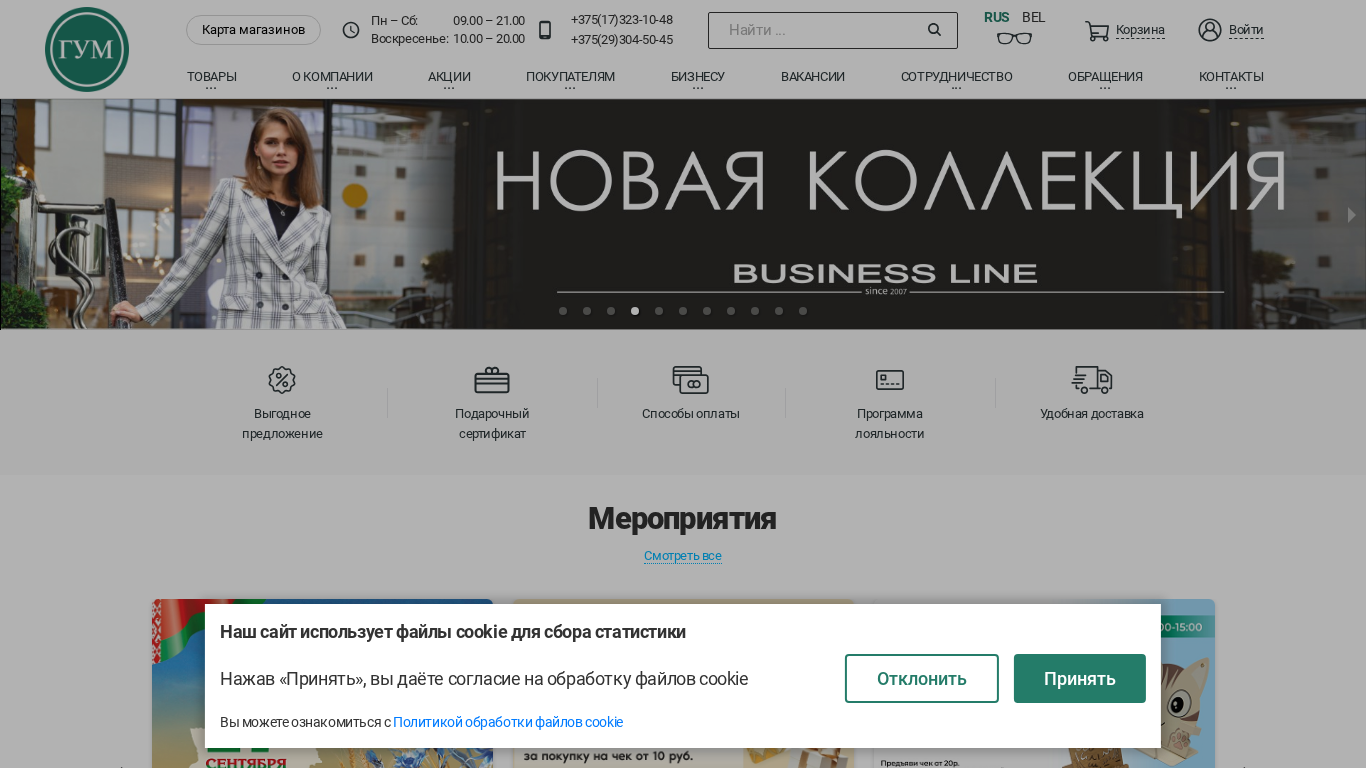 | Адрес | г. Минска. Впервые распахнул свои двери для покупателей и гостей 5 ноября 1951 года. ГУМ — достопримечательность Беларуси. |