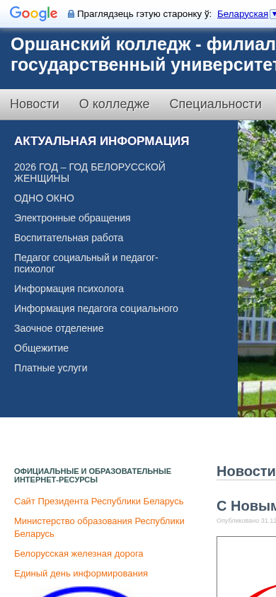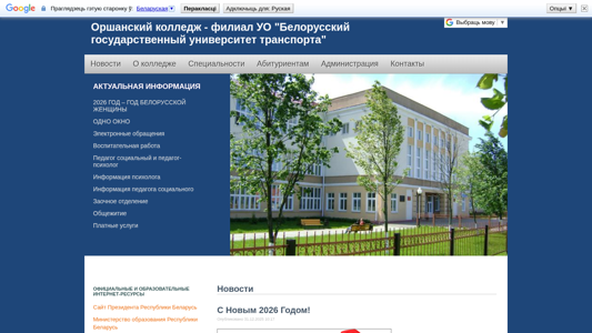 | AI-анализ | The portal of Orshansky College, a branch of the Belarusian State Transport University, provides information on the college, its administration, specialties for prospective students, contacts, and the latest news. With sections on admissions, student life, paid services, and educational resources, the site also features a blog and links to various educational and official internet resources. Recent news include an open forum with the organization "Belaya Rus" and New Year greetings. The site is operated by the Belarusian State Transport University. |