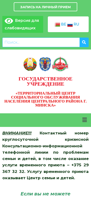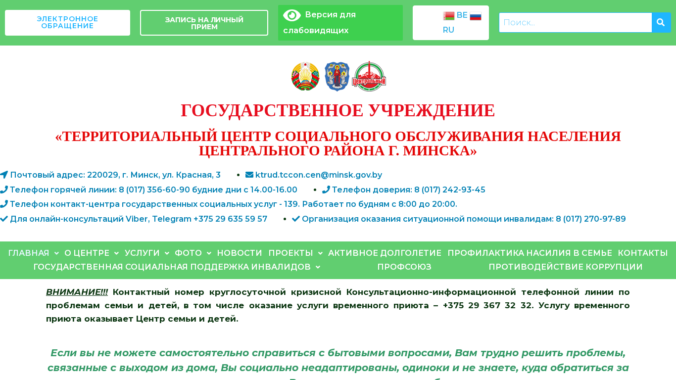 | Название / Заголовок | Государственное учреждение – «Территориальный центр социального обслуживания населения Центрального района г.Минска» |