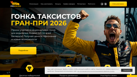 | AI-анализ | Сайт посвящен первому эксклюзивному заезду таксистов в Беларуси для водителей Yandex Go. Заголовок "ГОНКА ТАКСИСТОВ ГРАН-ПРИ 2026" и описание включают информацию о соревнованиях, расписании, бонусах и процедурах участия. Сайт также предлагает мастер-классы от водителей Yandex GO и победителей, а также экспертов в вождении, стилях и психологии отношений с пассажирами. Заезд проводится 12 официальных мероприятий в год, участники могут увеличить свои доходы, эффективно использовать транспортные средства, сократить затраты на обслуживание и ремонт, а также справиться с конфликтами с пассажирами. Сайт стремится предоставлять равные возможности для всех участников, с доступом к общим рейтингам 24/7, без использования ботов или поддельных аккаунтов. Домен сайта — proracers.by. |