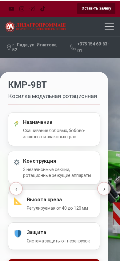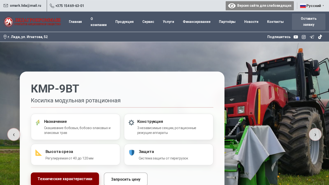 | SEO-описание | ОАО «Лидагропроммаш» — один из крупнейших производителей сельскохозяйственной техники в Беларуси. Сеялки, опрыскиватели, почвообрабатывающие машины и посевные комплексы LIDER. Высокое качество, передовые технологии и поставки по всему миру |