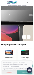 | AI-анализ | Сайт "Магазин ноутбуков ЕВРОТЕК" (European Laptop Shop) представляет собой электронную коммерческую платформу, специализирующуюся на продаже ноутбуков. Сайту присваиваются ключевые слова, такие как "ноутбук", "компьютеры", и "техника". Главная страница включает в себя корзину с товарами (Shopping Cart), раздел для "Готовые к заказу" (Ready to Order) и вкладку "Сравнение" для сравнения товаров. Сайт также содержит разделы "Корзина", "Избранные товары" и уведомление о том, что "Наш сайт использует файлы cookie" (Our site uses cookie files). Популярные категории товаров включают "Электроника", "Компьютеры и сети". |