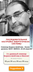 | SEO-описание | Семинар Бориса Шойтова в Минске. Базовый уровень SEST. 24-26 апреля. Альтернативная медицина. |