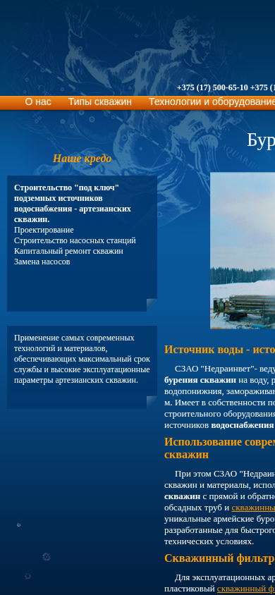 | SEO-лексика | скважин воду 375 сзао недраинвест бурение артезианских бурения беларусь скважинный минске области 500-65-10 факс 500-65-14 e-mail технологии материалы строительство под |