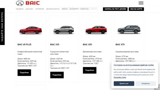 | AI-анализ | The website is an auto dealership for BAIC brand vehicles in Gomel, Belarus. It offers new BAIC models for sale with features including ozone-coated bodies, safety systems, and richly equipped interiors. The models available include the BAIC U5 PLUS compact sedan, the BAIC X35 city compact crossover, the BAIC X55 dynamic crossover, the BAIC X75 medium-sized crossover, and the BAIC BJ40 rugged off-roader. Each model provides advanced aerodynamics, acoustic comfort, and fuel efficiency, along with modern and practical interiors made of high-quality materials. The site features a contact section with information on making a test drive appointment, consulting on financing, and getting a quote for a call-back. The dealership's address and contact numbers for both sales and service are |