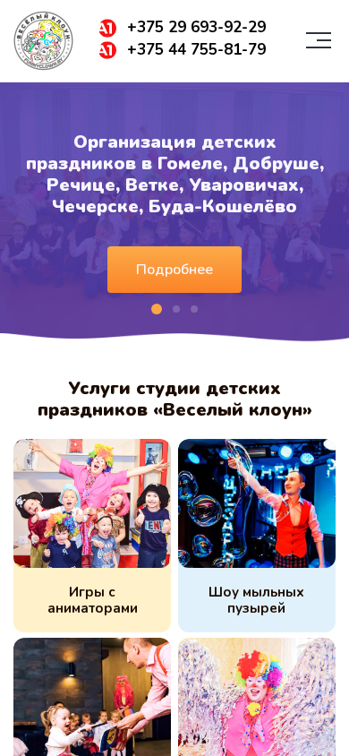 | SEO-описание | Заказать аниматора в Гомеле. Звоните уже сейчас, пока вашу дату не забронировал кто-то другой. +375 29 693-92-29 и +375 44 755-81-79. |