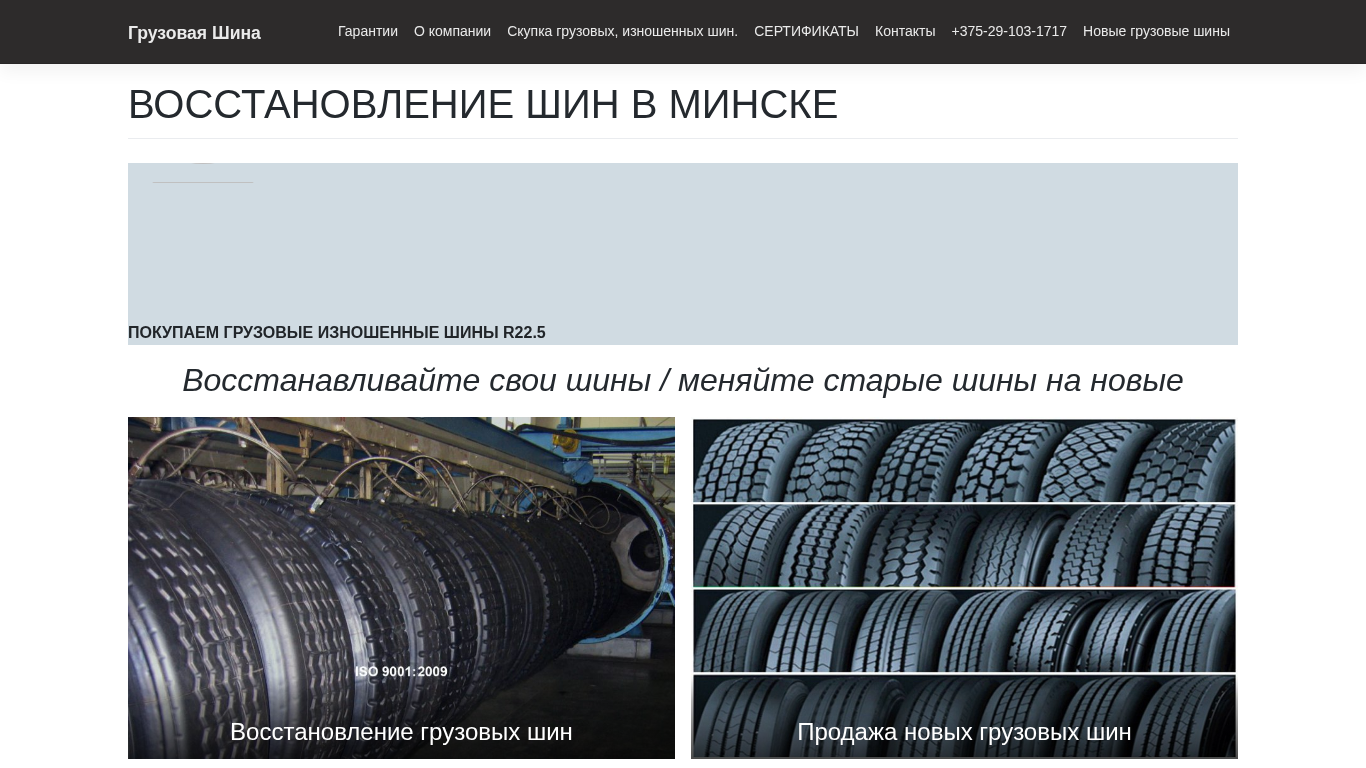 | Название / Заголовок | ВОССТАНОВЛЕНИЕ ШИН В МИНСКЕ | Грузовая Шина |
