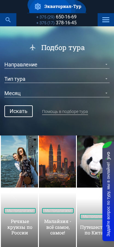 | AI-анализ | The web project "Экваториал-тур" is a travel agency located in Minsk, Belarus, at the address 220072, Surganova Street, 11, office 205, near the metro station "Академия наук". The agency offers various types of tours, including New Year and Christmas tours, cruises, exotic and adventure travel, safaris, aviatours, bus tours, excursion tours, beach vacations, and combination tours to other countries. They also provide shopping, spiritual, and svaedbny (wedding) tours. The agency's contact information includes phone numbers +375 (17) 378-16-45, +375 (17) 373-56-44, +375 (29) 650 |