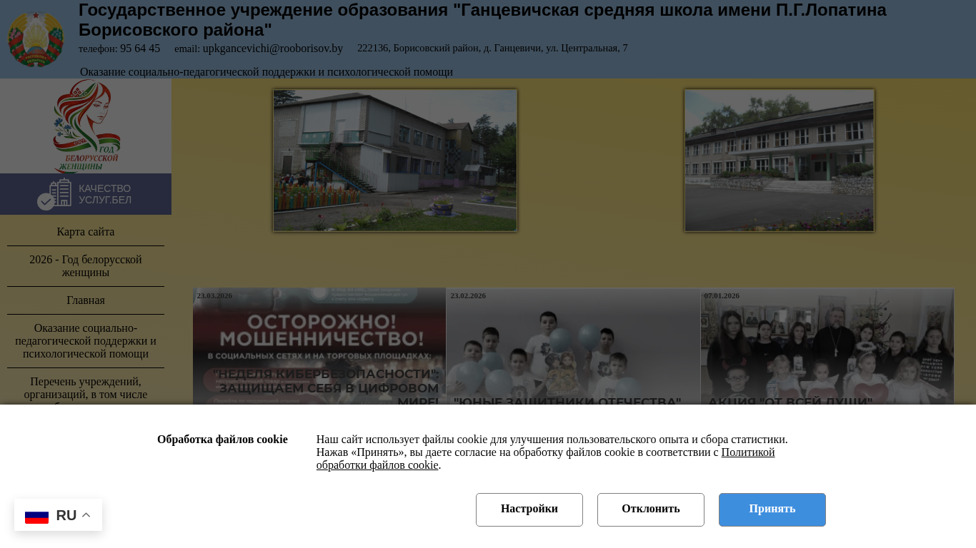| Название / Заголовок | ГУО "Ганцевичская средняя школа имени П.Г.Лопатина Борисовского района" - Официальный сайт |