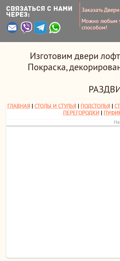 | SEO-описание | Двери Лофт из дерева межкомнатные и амбарные раздвижные не стандартные размеры под заказ Минск и РБ. Собственное производство дверей! |