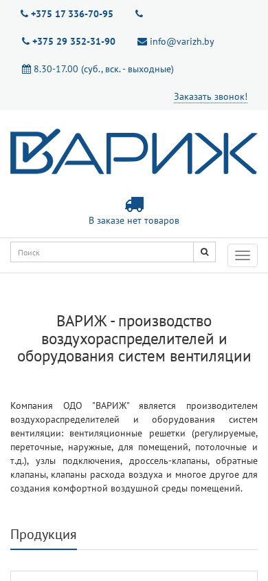 | Ключевые слова | ВАРИЖ - производство воздухораспределителей и оборудования систем вентиляции |
