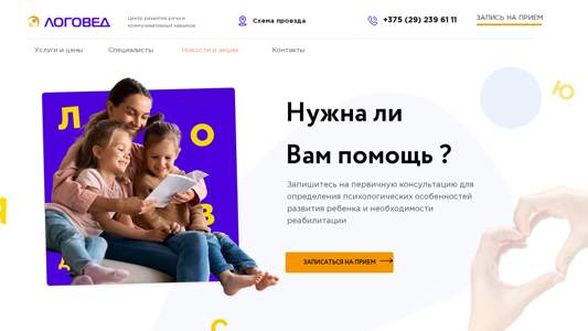 | AI-анализ | Этот сайт является логопедическим центром для детей, занимающимся развитием и коррекцией речи под названием "Логовед". Он предлагает современные и эффективные методы развития речи и программу для родителей. Для получения дополнительной информации, пожалуйста, звоните по телефону +375(29) 239-61-11. Центр, открытый в сентябре 2016 года, сотрудничает с нейропсихологическим центром "ЛОГОПРОГНОЗ" в Санкт-Петербурге. Центр помогает детям с различными трудностями в развитии речи, включая аутизм, специфическое нарушение языка, расстройства артикуляции, затруднения понимания и выражения, заикание и другие состояния. Он также поддерживает семьи, воспитывающие "специальных" детей. Подход центра заключается в том, что если ребенок ведет себя плохо, это потому, что он не может поступать по-другому. Восстановление — это долгосрочный процесс, а не спринт. |