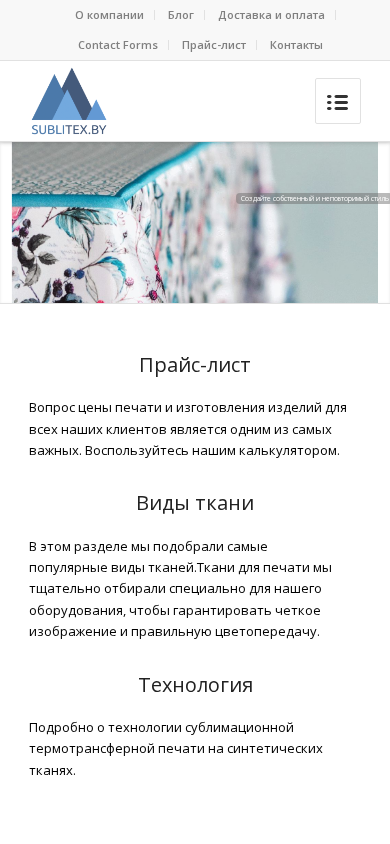 | SEO-описание | Сублимационная печать на ткани. Печать на материале заказчика. Печать принтов, кроя, рекламных материалов, флагов, оформление интерьера, декораций. Разработка дизайнов |