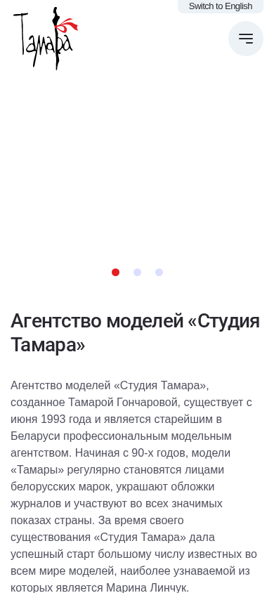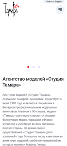 | AI-анализ | language: ru country: BY category: business type: website subtype: agency The website is a professional modeling agency called «Студия Тамара», established by Tamara Goncharova in June 1993, making it the oldest in Belarus. Since the 90s, models from the agency have regularly become faces of Belarusian brands, graced magazine covers, and participated in all major shows in the country. The agency has launched successful careers for numerous internationally recognized models, the most famous of whom is Marina Linchuk. The website provides information about the agency's services, including modeling opportunities for women, men, and children, as well as a modeling school. Contact information for the agency, including phone numbers and email addresses, are also provided. |