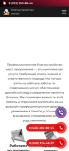 This website offers cemetery improvement services in Belarus, including tile laying, framework installation, fence installation, benches, tables, borders, and monument installation. The title and description of the site mention various aspects of the business, such as ordering, photos of works from 2025, and contact information for customers in various cities including Minsk, Homel, and Rechitsa. The site also promises professional services, a full range of works, and a free consultation. The top words on the site indicate a focus on installation and various types of work, as well as the words 'memorials' and 'prices'. The site appears to offer a range of services related to the upkeep and improvement of cemeteries.