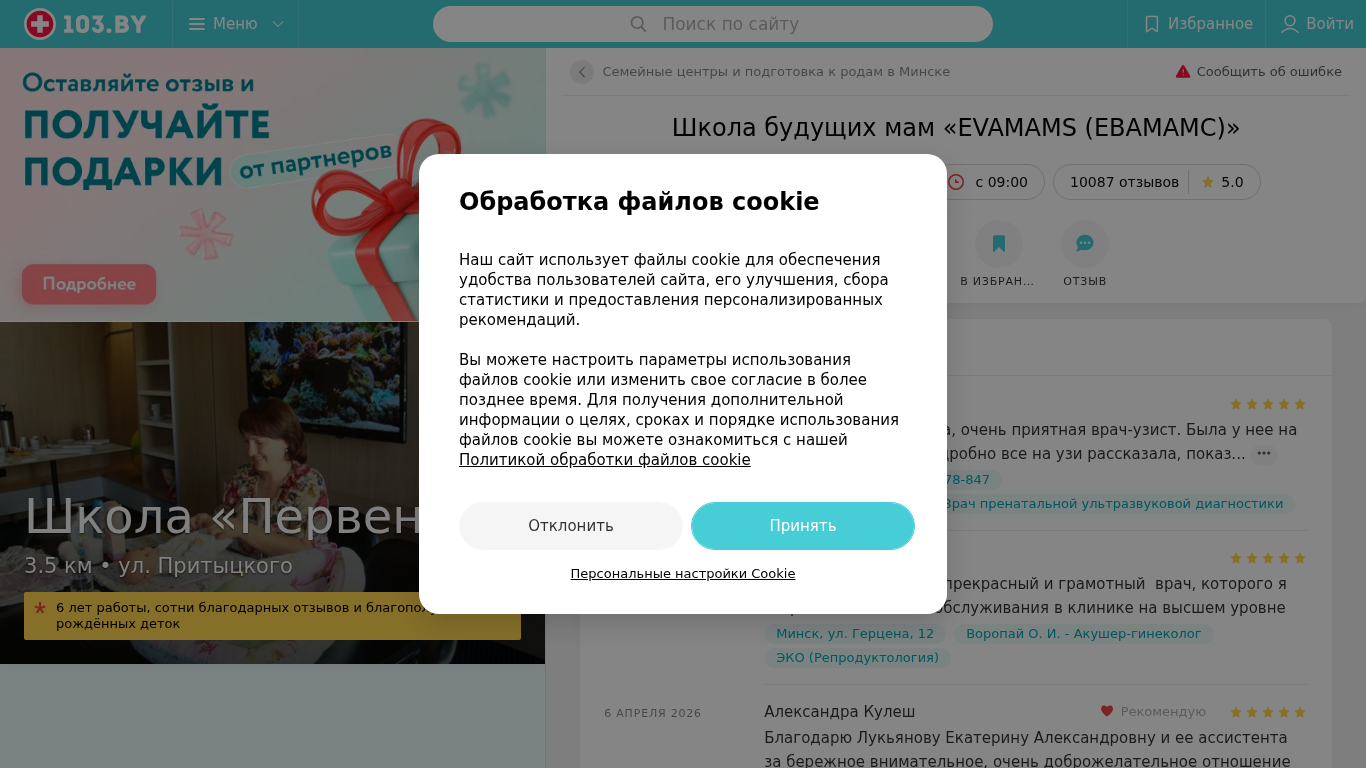 Портал evaclinic-mams.103.by представляет собой EvaMams (ЕВАМАМС), школа для будущих мам, расположенная в Минске по адресу ул. Герцена 10. Сайт предоставляет контактную информацию, график работы и отзывы о школе. Пользователи могут просматривать телефонные номера и карту для удобной навигации. Школа получила более 10,000 положительных отзывов с средней оценкой 5.0. Некоторые выделяют профессиональный и заботливый подход медицинского персонала, особенно специалистов по ультразвуковому обследованию и гинекологов. Школа предлагает диагностику на ранних сроках беременности и уже несколько лет успешно работает, имея множество благодарных отзывов от довольных клиентов.
