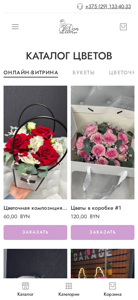 | AI-анализ | This online resource is an e-commerce website specializing in flower sales. The title of the website is not explicitly stated, but it can be inferred from the keywords and the content that it is called "Online-vitrina" or "Катaлог" (catalog) and focuses on selling various types of bouquets, monobouquets, and author's bouquets, as well as flowers in boxes. The description includes mentions of "цветы" (flowers), "букеты" (bouquets), and "композиции" (compositions), which further supports the inference. The top words include "byn" (Belarusian currency), "заказать" (to order), "гомель" (city in Belarus), and phone numbers, suggesting that the business is based in Goemeul, Belarus |