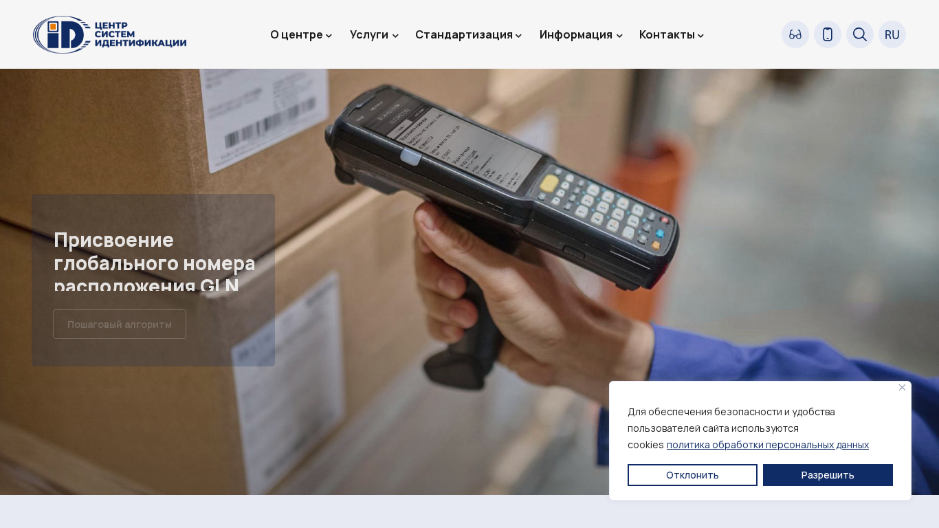 | Название / Заголовок | «Центр систем идентификации» - присвоение номера GTIN, регистрация номера GLN |