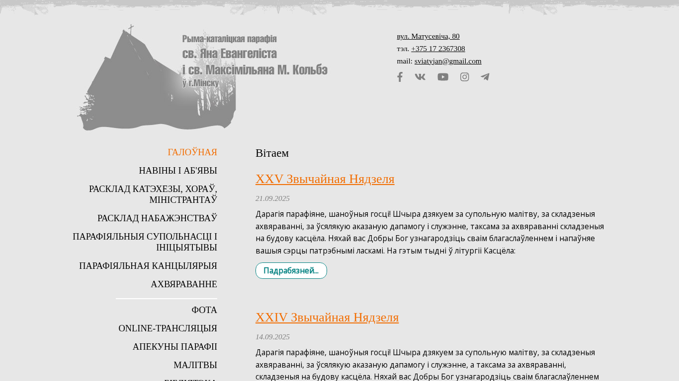 | Название / Заголовок | Парафія Св. Яна Евангеліста і Максімільяна Кольбэ ў Мінску |