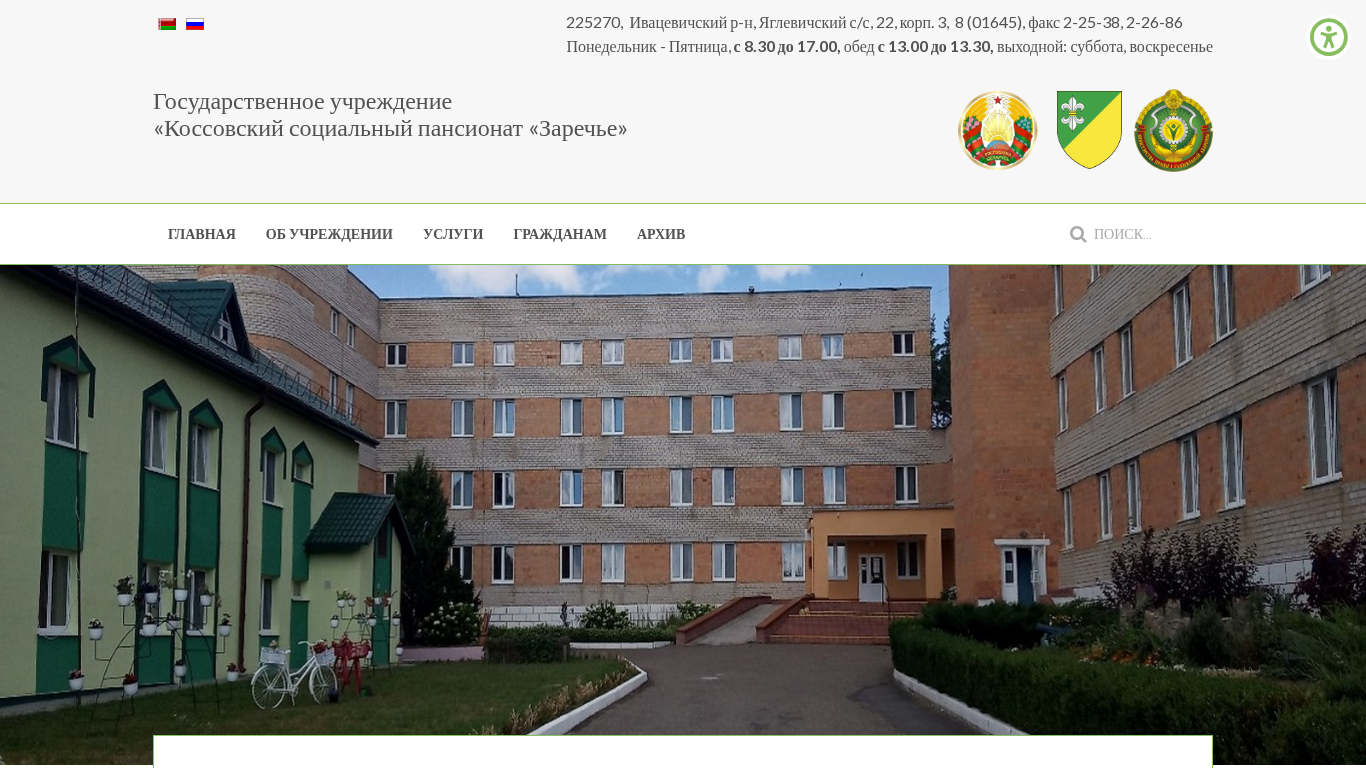 | SEO-описание | Государственное учреждение «Коссовский социальный пансионат "Заречье» |