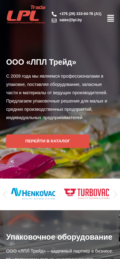 | AI-анализ | Описание: ЛПЛ.бы предлагает оборудование для упаковки для мало- и крупномасштабных производств. Расположенный в Минске компании обеспечивает запасы и доставку в Беларуси. Она предоставляет продажу, обслуживание и ремонт различных упаковочных оборудований производителей международного уровня. Более подробная информация доступна по кнопке 'подробнее'. |