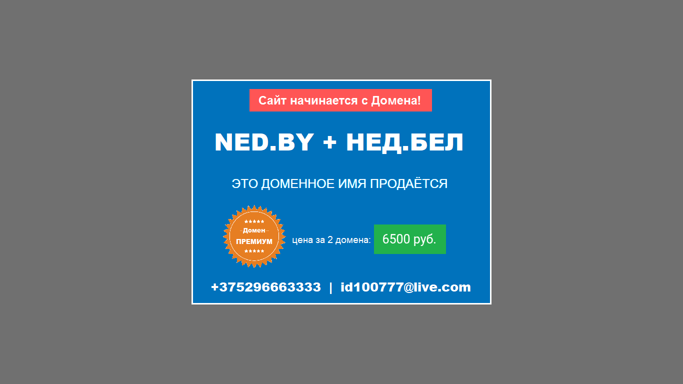 | Название / Заголовок | NED.BY (ned.by) - ЭТО ДОМЕННОЕ ИМЯ ПРОДАЁТСЯ |
