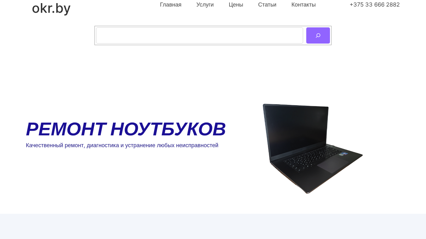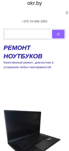 | AI-анализ | language: ru The website okr.by is a Belarusian website providing repair services for laptops, with a focus on diagnosis, repair, and replacement of various components. The website offers a range of services, including diagnostic and repair procedures, as well as maintenance and optimization services, such as setting up Windows and antivirus software. The website also provides a list of prices for various repair services, including the cost of replacement components. The website's team of experienced masters communicates with clients in Belarusian and provides detailed explanations of the problem and the cost of the repair work. The website does not require a deposit and only starts work after the client's approval. The website has a focus on providing high-quality and reliable service, with a guarantee on the replaced or repaired components. The website's main page features a search bar, a list of services, prices, and articles, as well as a contact phone number. |