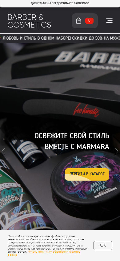 | AI-анализ | --- The portal Barber&Co is an e-commerce store in Belarus specializing in men's cosmetics and gift sets. It offers a range of products for beard and hair care, as well as gifts and instruments for clients. The website provides free shipping within Minsk and Belarus. Barber&Co brands are popular among gentlemen. The catalog includes sections for men's grooming, ideas for presents for barber shops, and contact information. The blog and contact details are also accessible. The store offers discounts up to 50% on men's cosmetics. The product range includes various items for shaving, such as electric razors, straight razors, T-shaped razors, and blades, as well as related accessories like brushes, mugs, and aftershave products. The store also sells styling products for men's hair, such as |