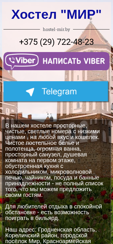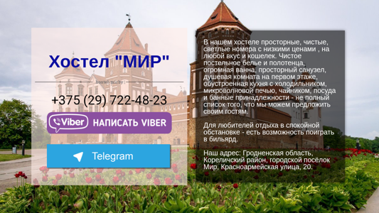 | Название / Заголовок | Хостел гп Мир. Гродненская обл, Красноармейская, 20 |