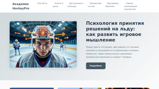 | SEO-описание | Академия HockeyPro: профессиональные тренировки по хоккею для детей и подростков в Беларуси. Физическая подготовка, школа вратарей и ледовые сборы. Запишитесь на пробное занятие! |